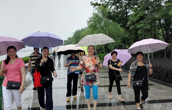 早上9點(diǎn),160余名麗汽退休職工齊聚麗水“外灘”防洪堤,雖然天空淅淅瀝瀝的下著雨,但阻擋不了大家的腳步。老年朋友撐著傘,一路歡聲笑語,精神抖擻地沿著防洪堤景觀帶走了半個多小時,隨后還參觀了麗水城市文化標(biāo)志性建筑應(yīng)星樓。