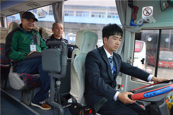 技能比武分安全駕駛常識比試和駕駛操作技能比武兩部分。安全駕駛常識比試以電腦當場作答方式進行,比試題目從理論考試題庫中隨機抽取。駕駛操作技能比武模擬迎接旅客上車、發(fā)車前安全承諾、途中安全駕駛和車輛回場送客等幾個環(huán)節(jié)進行。比武邀請市交警支隊警官、市運管局運安科領導及麗汽集團汽校管理人員擔任裁判。