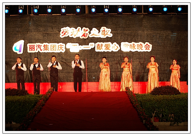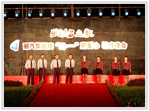 4月29日晚,由麗汽集團舉辦的“慶五一”獻愛心歌詠晚會在市區(qū)納愛斯健身廣場隆重舉行。市交通局、市交警支隊、市文明辦、市運管處、市慈善總會等單位領(lǐng)導應(yīng)邀出席演唱會。中國音樂家協(xié)會會員、市音樂家協(xié)會主席劉程遠,中國音樂家協(xié)會會員、麗水學院藝術(shù)分院院長楊建偉應(yīng)邀擔任歌詠比賽專家評委。麗汽集團黨政工領(lǐng)導,各二級單位的員工代表,及集團公司2009年度各類先進代表共700余人參加演唱會。