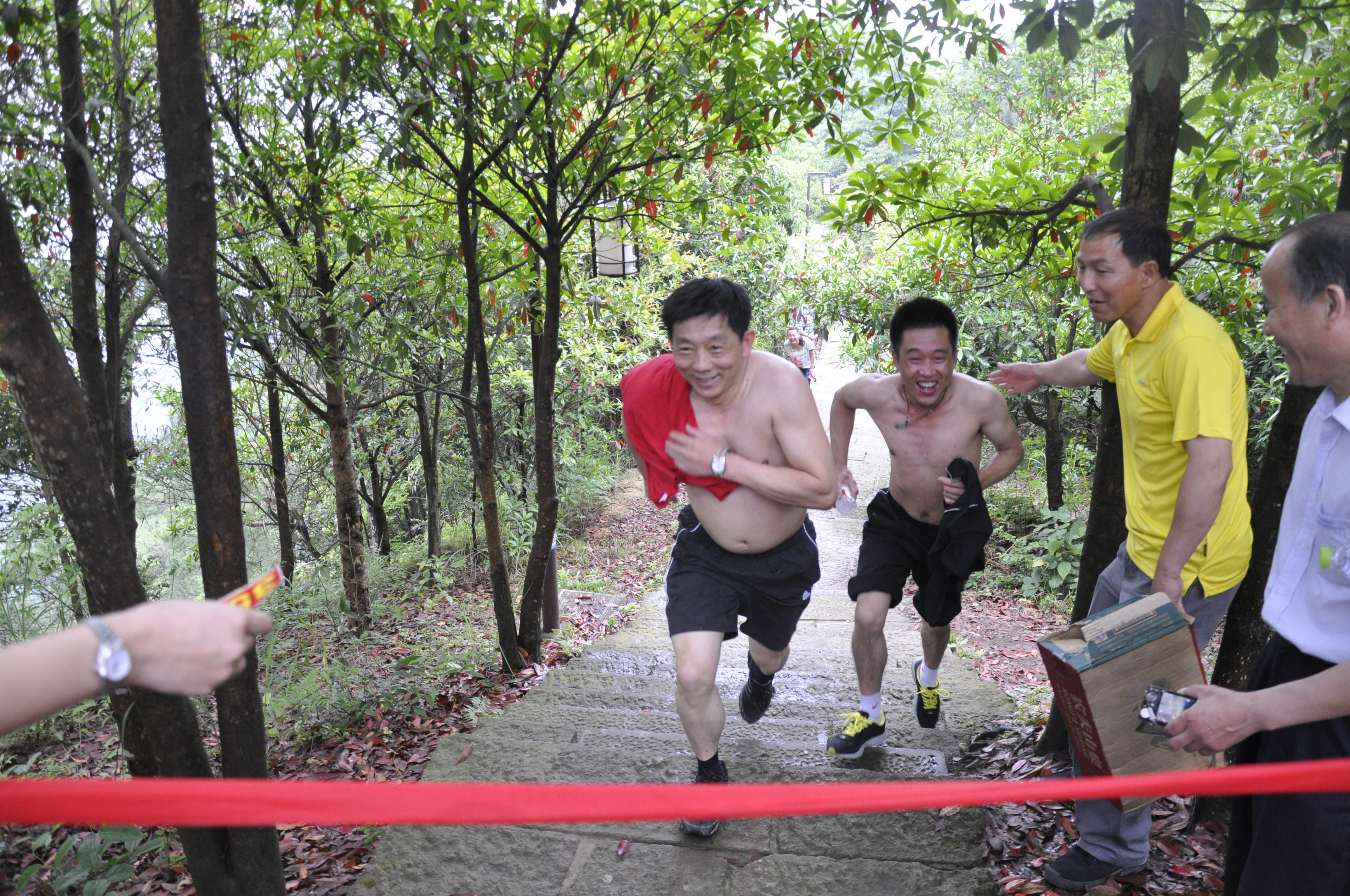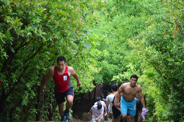 因拔河比賽冠軍要在運(yùn)動(dòng)會(huì)正式比賽期間產(chǎn)生,因此登山比賽也成為了集團(tuán)公司第五屆職工運(yùn)動(dòng)會(huì)產(chǎn)生首個(gè)冠軍的比賽項(xiàng)目。隨著裁判員的一聲令下,54名運(yùn)動(dòng)員爭(zhēng)搶著向著終點(diǎn)跑去。14分38秒后,快客分公司曾國(guó)偉第一個(gè)跑著經(jīng)過(guò)終點(diǎn);客運(yùn)東站樂(lè)進(jìn)15分16秒后第二個(gè)經(jīng)過(guò)終點(diǎn),客長(zhǎng)運(yùn)分公司鄭雅明以16分07秒居第三。
