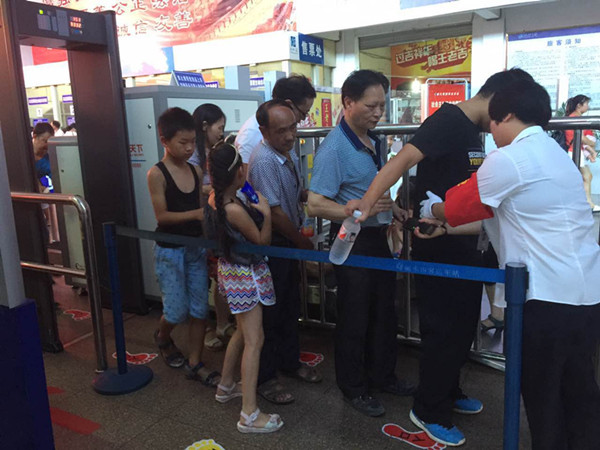 活動(dòng)第一天,佩戴志愿者紅袖章的同志已經(jīng)穿梭在車站的各個(gè)角落,熱情的為來(lái)往旅客服務(wù)。在售票大廳,為旅客介紹客車的運(yùn)行班次,引導(dǎo)幫助旅客使用自助售票機(jī)購(gòu)票;在服務(wù)總臺(tái),為未帶身份證的旅客辦理信息登記工作;在安檢口,積極督導(dǎo)旅客進(jìn)行人物分離安檢,維持排隊(duì)秩序;在候車大廳,為旅客提供免費(fèi)防暑涼茶,宣傳客車服務(wù);在長(zhǎng)途班車檢票口,幫助不熟悉實(shí)名檢票的旅客順利檢票通過(guò)。