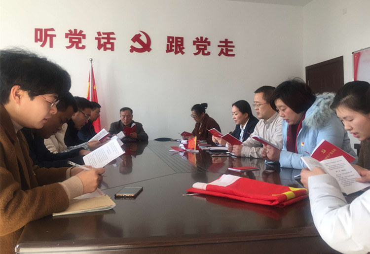 會(huì)上,支部書(shū)記王旭帶領(lǐng)黨員們重溫入黨誓詞,發(fā)放新黨章,黨員同志齊聲誦讀了黨章中關(guān)于黨徽黨旗的內(nèi)容。書(shū)記結(jié)合《機(jī)關(guān)支部主題黨日活動(dòng)制度》和《關(guān)于開(kāi) 展黨員(優(yōu)秀)先鋒崗活動(dòng)的通知》兩份文件精神的內(nèi)容,將2018年支部的主要工作和要求予以了傳達(dá)。
