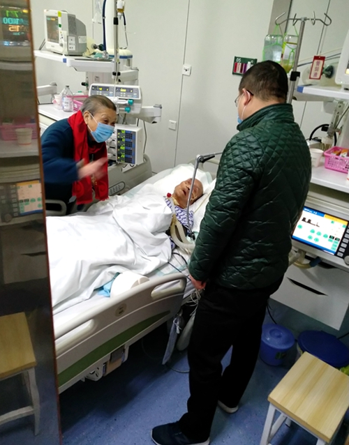 在溫州中醫(yī)院監(jiān)護(hù)室,一直處于半昏迷狀態(tài)的董周英當(dāng)依稀聽知公司黨委書記、董事長前來看望他時(shí),興奮地睜開了雙眼,流露著滿眼喜悅。葉茂輕輕握著董周英的手,衷心希望董老能提振信心,勇敢的邁過眼前這道坎。