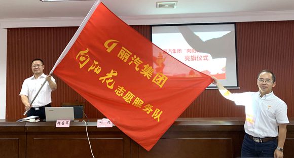 專題黨課后,還舉行了麗汽集團“向陽花”志愿服務(wù)隊亮旗儀式。經(jīng)過前期征名和討論,集團公司黨、政、工、團四條線的志愿服務(wù)隊合并定名為“向陽花”志愿服務(wù)隊,此舉將規(guī)范統(tǒng)一麗汽集團的志愿服務(wù)載體,使廣大黨團員和員工投身志愿服務(wù)的參與面更為廣泛。