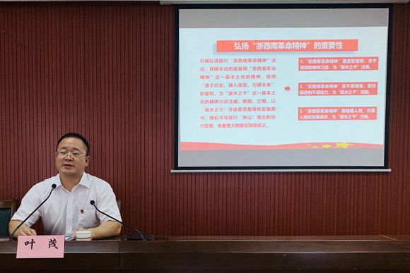 為傳達市人大常委會《關(guān)于弘揚浙西南革命精神的決定》精神,引導(dǎo)廣大黨員干部夯實黨務(wù)知識和工作水平,更好地弘揚踐行“浙西南革命精神”,7月31日,麗汽集團組織開展弘揚“浙西南革命精神”專題黨課暨黨務(wù)知識培訓(xùn)。集團公司黨委書記葉茂上專題黨課,各黨(總)支部委員、團員干部等60余人參加學(xué)習(xí)培訓(xùn)。
