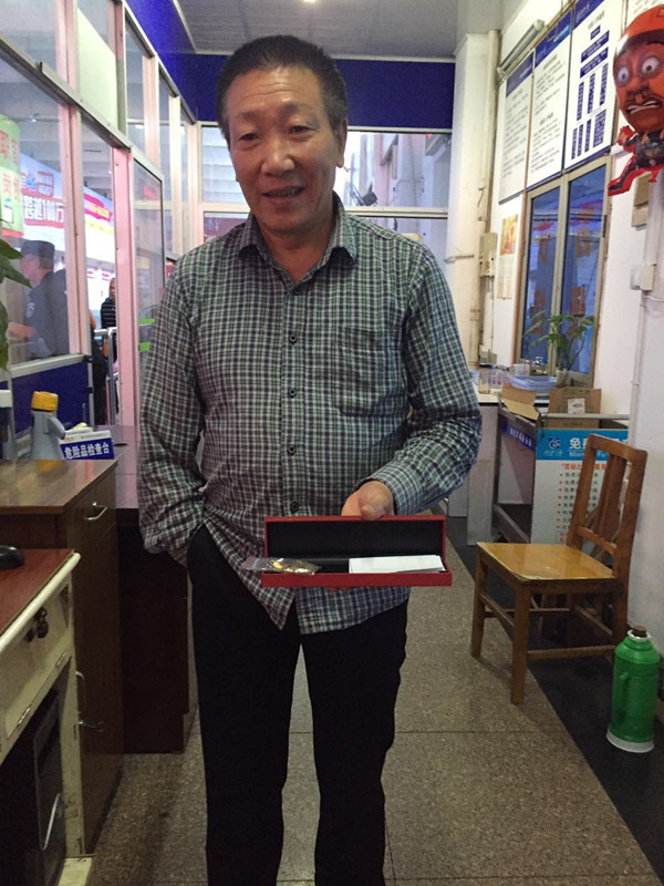 10月24日8點左右,在客運東站總臺,一位名叫柯玉榮的旅客捧著價值一萬多元、重達50克的金燦燦的金項鏈激動萬分地說:“真是太感謝你們了,你們追回的不僅僅是一條金項鏈,更是我兒子的一份孝心,沒想到因為我的粗心把它落在了售票窗口處?!?br/> 面對失而復(fù)得的禮物,柯玉榮旅客激動不已。