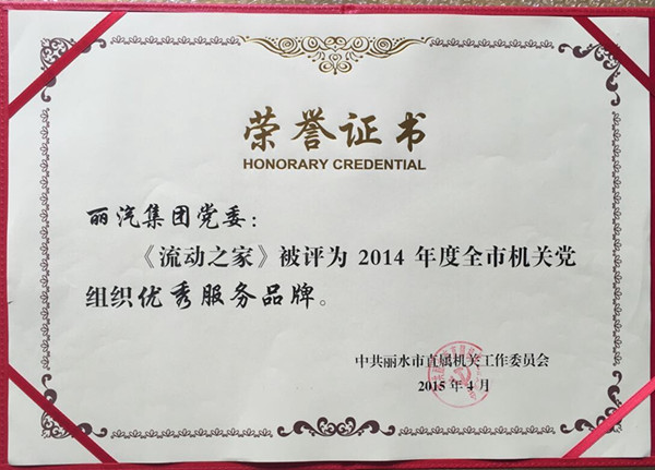 近日,麗汽集團“流動之家”服務品牌在中共麗水市直屬機關工作委員會開展的2014年度全市機關黨組織優(yōu)秀學習品牌、優(yōu)秀服務品牌評選活動中,喜獲“2014年度全市機關黨組織優(yōu)秀服務品牌”稱號。
